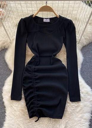 Стильна трикотажна сукня з зав'язкою збоку і вирізом декольте😍 Мод:1057 Колір: чорний Тканина: машинна в'язка Розмір: універсал 42-44