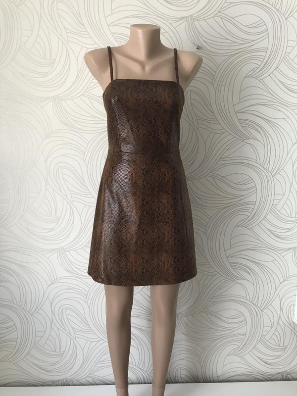 Платье со змеиным принтом от «Mango» Это платье с квадратным вырезом имеет элегантный крой и змеиный принт, который так популярен в этом сезоне. Носите его как самостоятельный предмет гардероба с ботильонами, а колготки и симпатичную водолазку, когда похолодает. Искусственная кожа. Короткий фасон. Тонкие бретельки. Вытачки. Потайная молния сбоку. Идеальное платье для вечеринки. Новое не носилось но этикетку срезала.