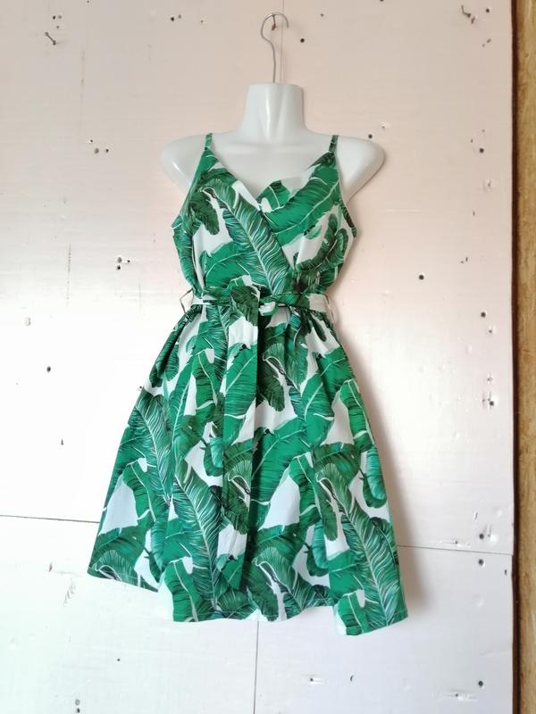сукня бавовна з ефектом запаху тропічні листя пояс у комплекті