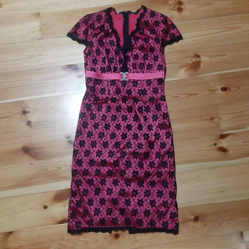 Сукня рожева, дуже гарна в живу. Довжина 92 см. Об'єм по плечах 34×2, об'єм грудей 38×2, талія 33×2