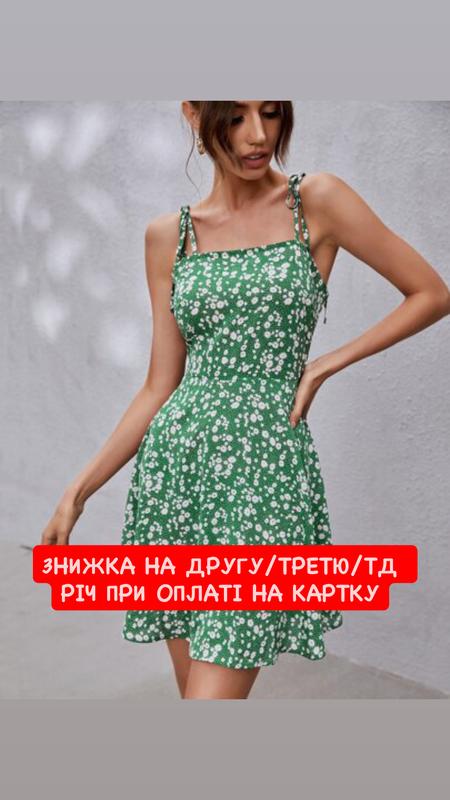 МІНУС 10 ГРН ЯКЩО КУПУЄТЕ БЕЗ СМАРТ-ДОСТАВКИ, ВКАЗУЙТЕ В ПОВІДОМЛЕННЯХ, ЗМІНЮ ЦІНУ (продавець тепер має платити комісію за оформлені смарт-доставкою замовлення). Ціна з врахуванням комісії сайту, без торгу (знижка при покупці двох чи більше речей з оплатою на картку, надсилайте скріншоти у ОДИН діалог, бажано на найдешевшу річ - тоді буде більша знижка). 🛍 Зелена міні-сукня у квітковий принт ◽️розмір: М, можна S ◽️стан: 5/5, як нова 📌 Заміри: пог - 40-46, пот - 35-36 (можна менше), пос - вільно, 65+, довжина БЕЗ лямок, лямки зав'язуються під вас - 73. ❣️ Мої приблизні параметри на 3 фото: 173, ог 89 от 65 ос 90. Безпечна оплата або передплата на картку.