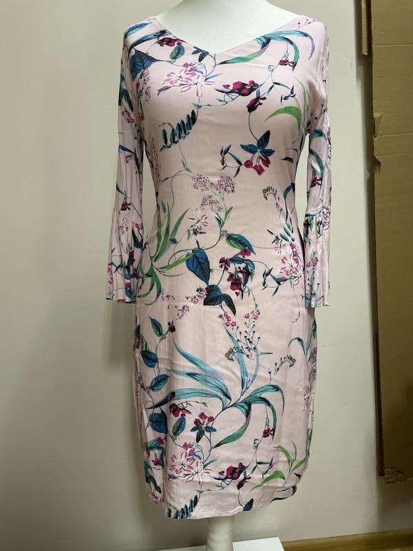 Віскозне плаття, розширене донизу, довжина 94см, пог 44см, пот 49см, поб 50см, ширина внизу 54см, довжина рукава 45см