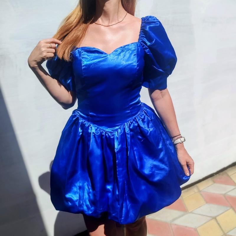 Яскрава синя сукня для фотосесії або тематичної вечірки ,карнавалу чи для аніматорів є незначні дефекти на рукавах де резинка трохи відпоролось (легко зашивається)