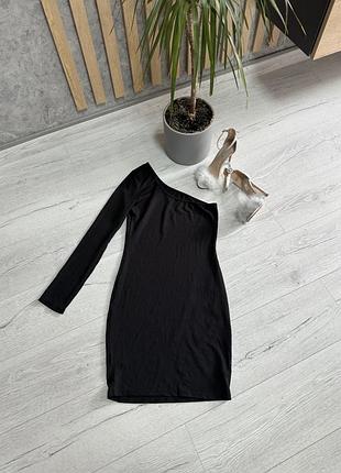 Коротке красиве плаття на одне плече. На рукаві розріз. Розмір: С-М