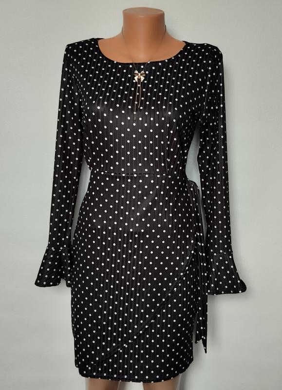 Шикарна сукня у горошок, тканина в рубчик. Замеры: длина 86 рукав 62 пог 48-58 пот 38-47 пост 45-57, ткань тянется