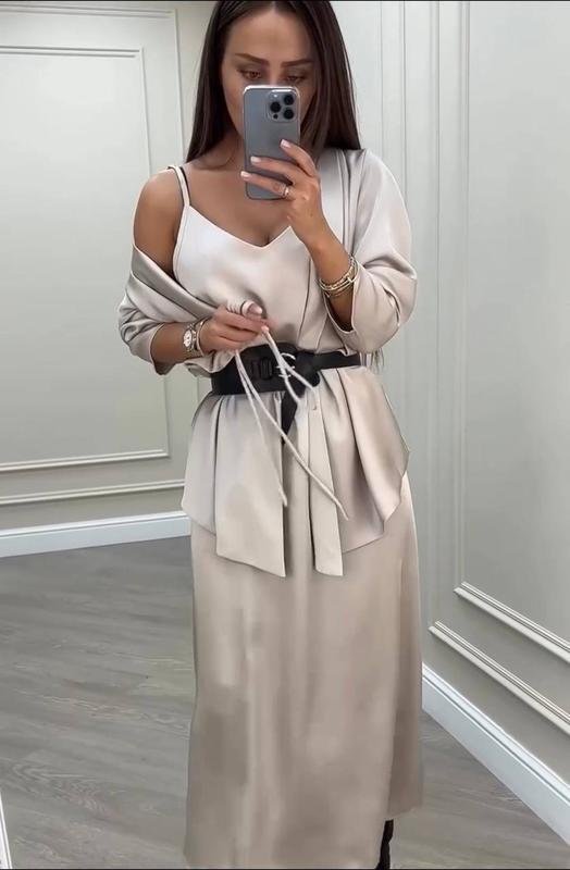 🔝🔝🔝НОВИНКА 🔝🔝 Костюм сукня + сорочка Шкіряний пояс можна купити окремо за 250 грн ▪Модель : 5790 1200 грн ▪Тканина: шовк Армані ▪Розмір: 42-44,46-48,50-52 ▪️колір : беж