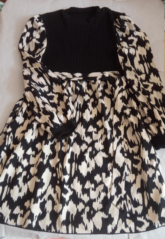 Легка сукня від Shein в ідеальному стані в розмірі M . Заг.довж-88см Плечі-33 НОТ-33 в спок.стані потягнеться . Верхня частина сукні в рубчик ,еластична. Рукав-61 , з манжетом . Талія завищена, під пояс .