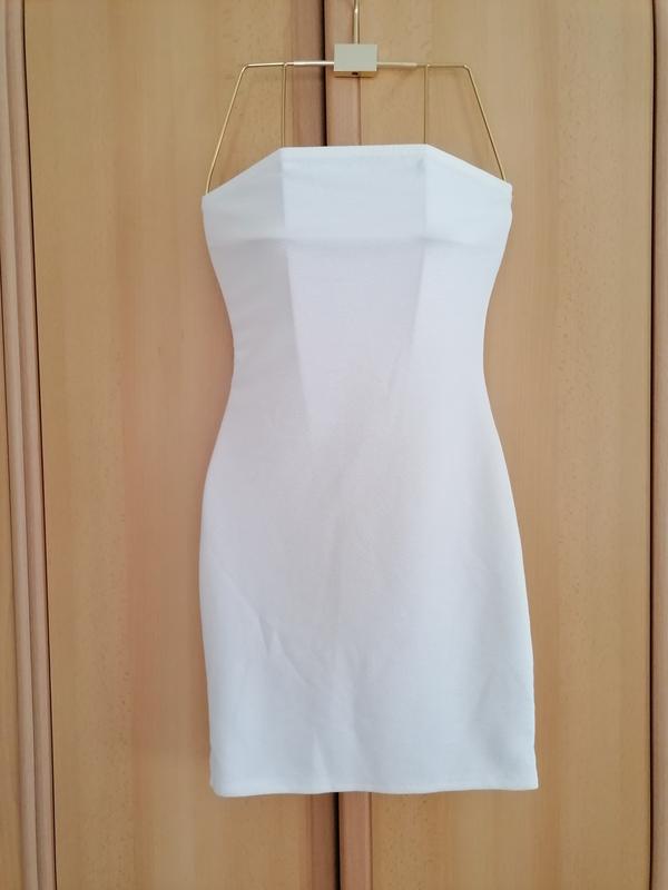 Новое качественное платье без бретелей. Сверху на резинке. Размер 44-46. Тканина легка, еластична. По груди полу охват 38см, тянется. Талия полуобхват 33см. Бедра полуобхват 40см. Длина 67см.