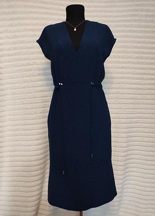 Сукня в чудовому стані. Тканина щільна, не просвічує. Бірка, розмір та заміри на фото Є дві кишені по боках. Підкладки немає. Поясок вшитий, не знімається. Довжина сукні – 105 см