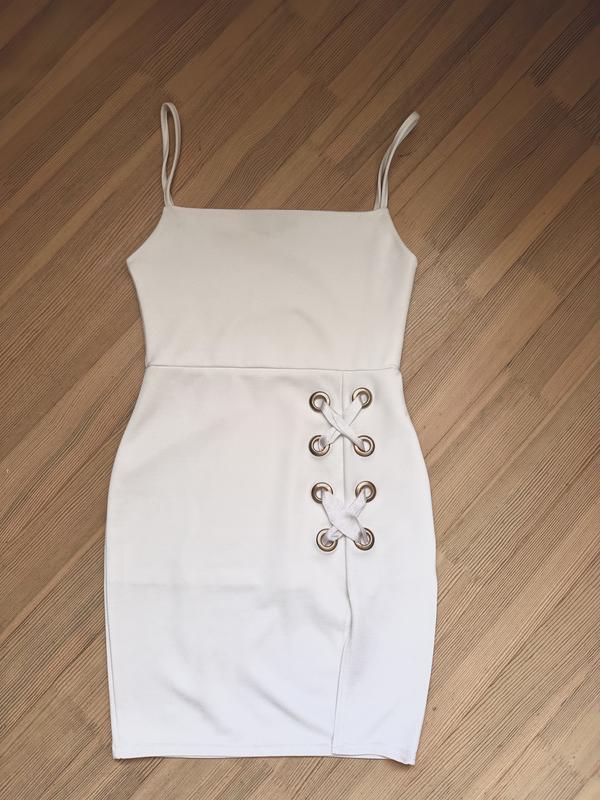 Біла сукня облягаюча, в ідеальному стані, без дефектів, не просвічується, гарно сидить по фігурі, тканина добре тягнеться
