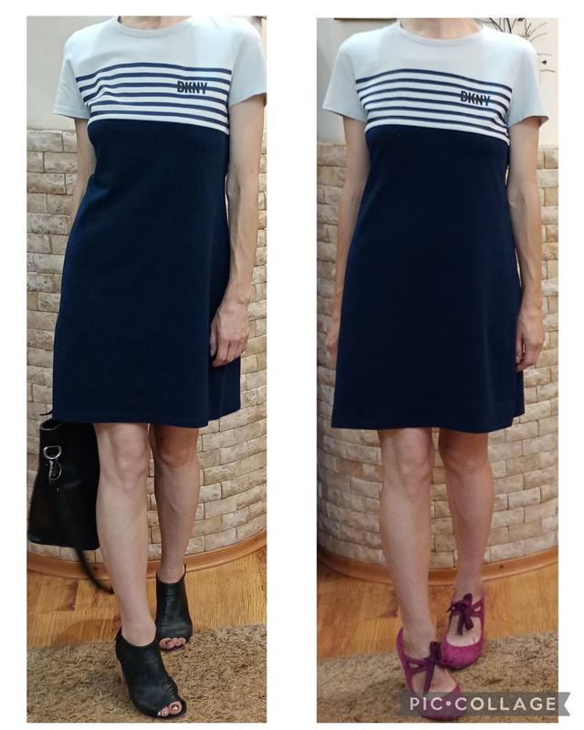 Сукня від американського Будинку моди (Donna Karan New York), заснованого легендарною Донною Каран – легендарної американкою, яка стала одним із найталановитіших та найуспішніших модельєрів зі світовим визнанням. Модель сукні - позачасова класика. Прямий сілует, лаконічний фасон t-shirt, глибокий темно-синій колір. Верх у бретонську смужку (синій та світло-сірий колір) - класика курортного одягу, символ морського стилю та базовий елемент у мінімалістичному стилі завдяки своїй універсальності та здатності створювати класичні чи повсякденні образи. Дизайн сукні не про моду, а про стиль. Нічого зайвого - лише якість світового рівня та статусність речі. Розмір - M (US, D, CA), L (F). Завдяки фасону відмінно сідає на L та M. Довжина - 90 см. Ширина плечей - 38 см. Довжина рукава - 18 см. Об'єм грудей - ,96 см. Об'єм талії - ,94 см. Об'єм стегон - 108 см. Тканина - , бавовна (95%), спандекс (5%). Країна виробництва - Бангладеш. RRP (ціна на сайті виробника) - 5147 грн.