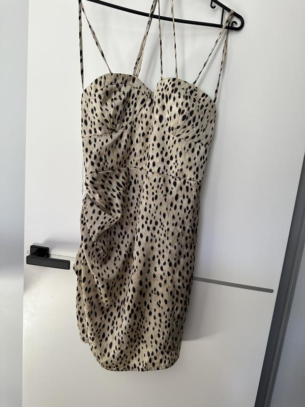 Коротка сатинова сукня М розмір, з одного боку збірка