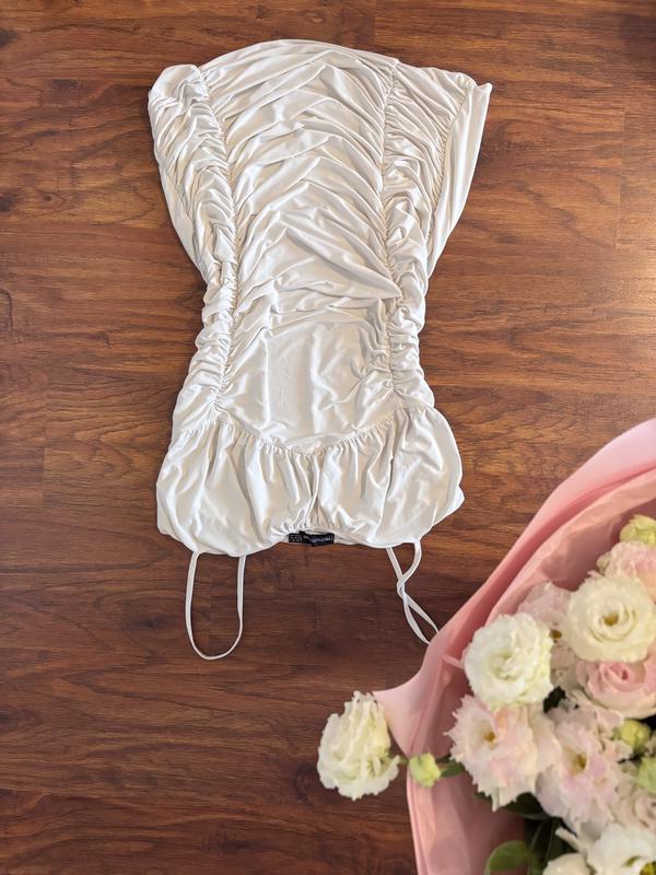 Біла сукня з мікро дайвінгу .Була одягнута пару разів. Всі заміри вказую в напівобхваті. Довжина 79 Груди 47-60 Талія 44-60 Стегна 53-75 290 грн 💕