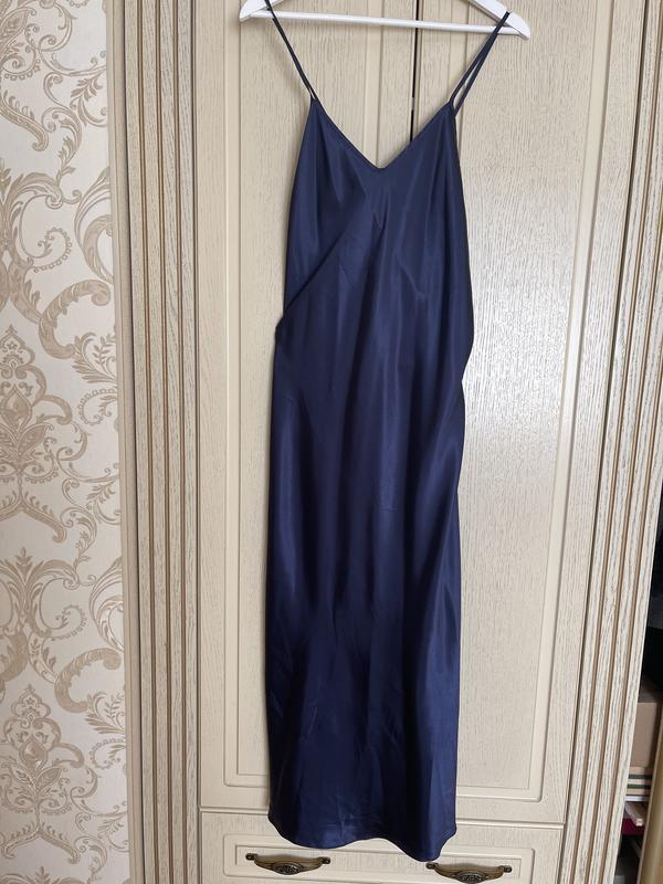 3 В ідеалі, красивий насичений темний синій. Якість тканини чудова! Красиво спадає по фігурі, пошите на косу- тому розмір модна від м-хл) Груди-51 Талія-40-57 Бедра-57-64 Довжина-139