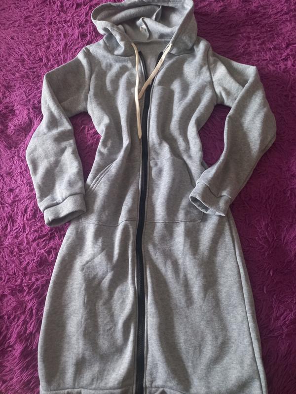 Дуже тепле плаття в спортивному стилі з капюшоном, водночас легке, зручне, надзвичайно приємне до тіла. в грудях -50-53 в талії -42-50 в стегнах -50-54 рукав -61 довжина -97 Стан нової речі