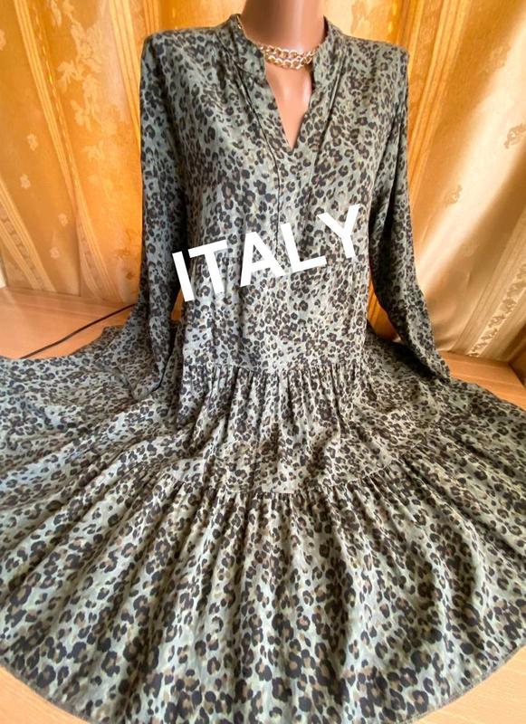 Шикарне ярусне плаття хаккі леопард із рукавом m-l /apricot/ італія.