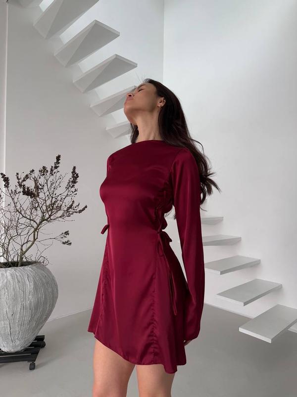 Шовкова сукня красива міні сукня корсет сукня бордо маленька сукня