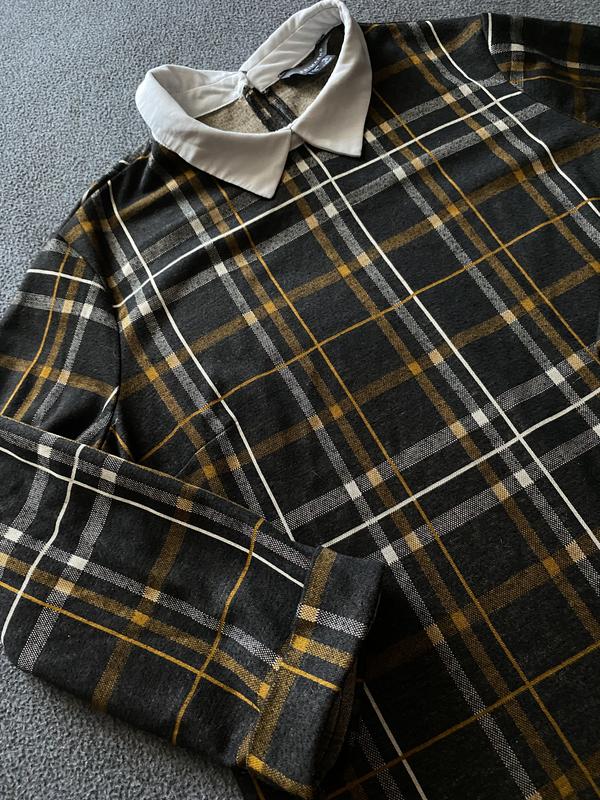 Від Primark у клітинку , розмір 38 написано, але підійде і на менший розмір буде вільніше, з комірцем , довжина 86см. Не тепле, але плотна тканина) Гарно виглядає на тілі)