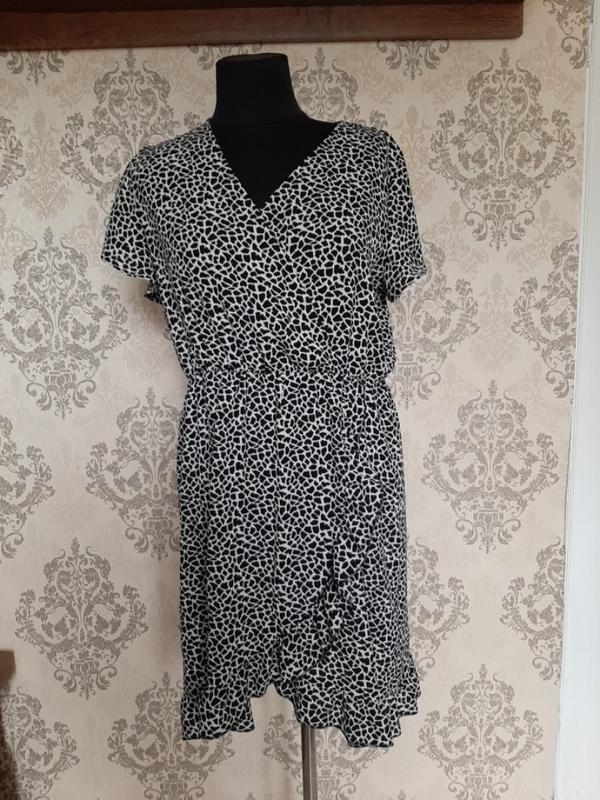 Платье до колена от Liz Devy, состояние идеальное. Размер XL, ткань 97% полиэстер, 3% эластан (не требует глажки) Верхняя часть платья на запах, красиво будет смотреться на великолепиях девочках (от 18 до 50 рочков) Кому свободная резинка на талии- можно добавить любой ремешок ( платье без пояса) По талии 42-58см В плечах 41см Высота от плеча до талии 41см В груди свободно до 62см Длина платья 97см