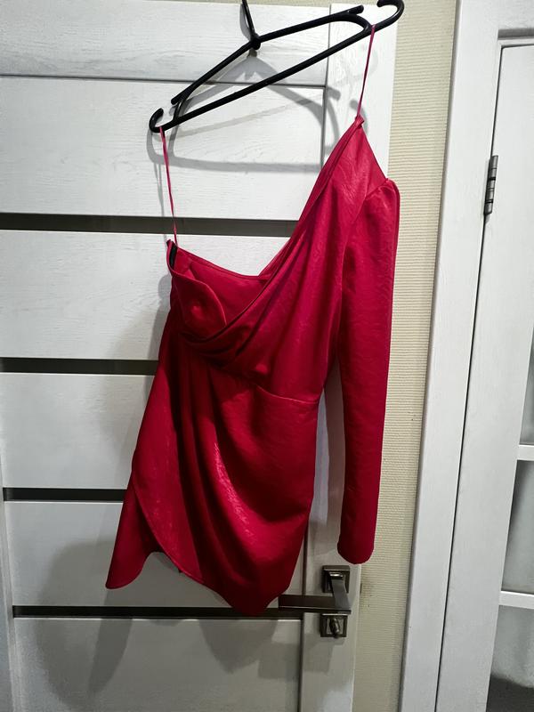 Нереально гарна сукня на 1 плече малинового кольору, є силіконова стрічка зверху