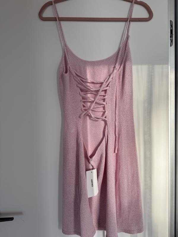 Дуже красива пляжна або просто літня сукня , матеріал під вязяний, нова , не підійшов розмір. Завʼязки на спині, тому розмір дуже коригується. Заміри : Довжина - 75 см від шлейки Півобхват Талія 39 см Півобхват Груди 38 см