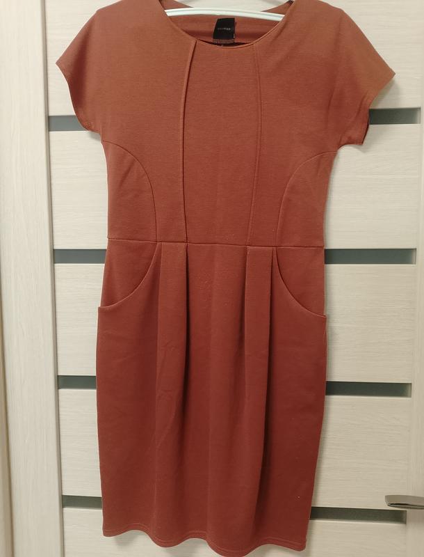 Плаття-футляр — класичний приталений силует, який м’яко підкреслює фігуру. Має лінію талії, що візуально поділяє верх і низ сукні, створюючи пропорційний образ. Без додаткових деталей — без застібок, поясу, ґудзиків чи воланів, тому виглядає лаконічно та стримано. Рукави короткі, трохи спущені, що додає комфорту та робить фасон універсальним. Довжина — приблизно до коліна. 🧵 Матеріал: Трохи еластична тканина середньої щільності трикотаж Добре тримає форму, не надто блискуча, приємна на дотик. 🎨 Колір: Теплий теракотовий — відтінок, який поєднує руді, коричневі та червоні ноти. Підходить для осіннього гардероба, добре комбінується із золотистими, бежевими, кремовими або чорними аксесуарами. 💄 Стиль та нагоди: Ідеальне офісне або повсякденне плаття — виглядає стримано, але елегантно. За допомогою аксесуарів (ремінь, прикраси, жакет) може стати варіантом і для вечірнього виходу або ділової зустрічі.