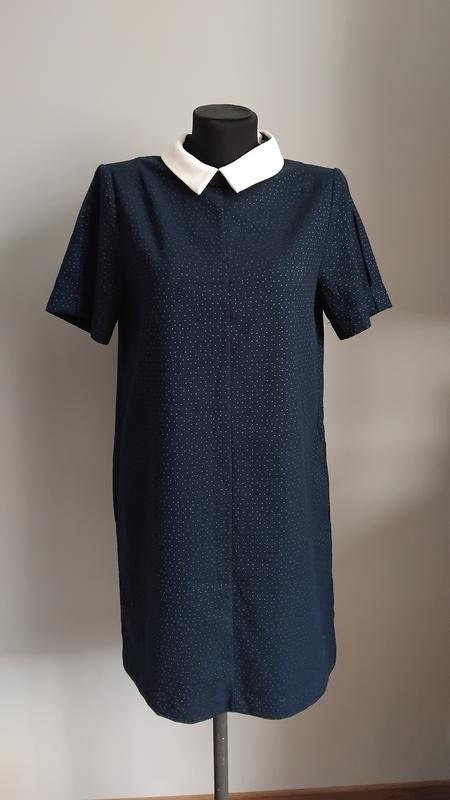 Маленькое синее классическое платье в идеальном состоянии. Воротничок можно отцепить, что очень удобно. Пошив идеален. длина 83см по груди 47см по стегон 47см рукавчик 22см