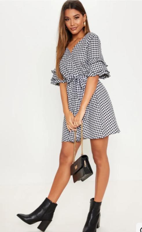 Сукня сіра в мілку клітинку PrettyLittleThing Довжина 86, Пог 51, пот 36/52( гумка) Довжина рукава 30