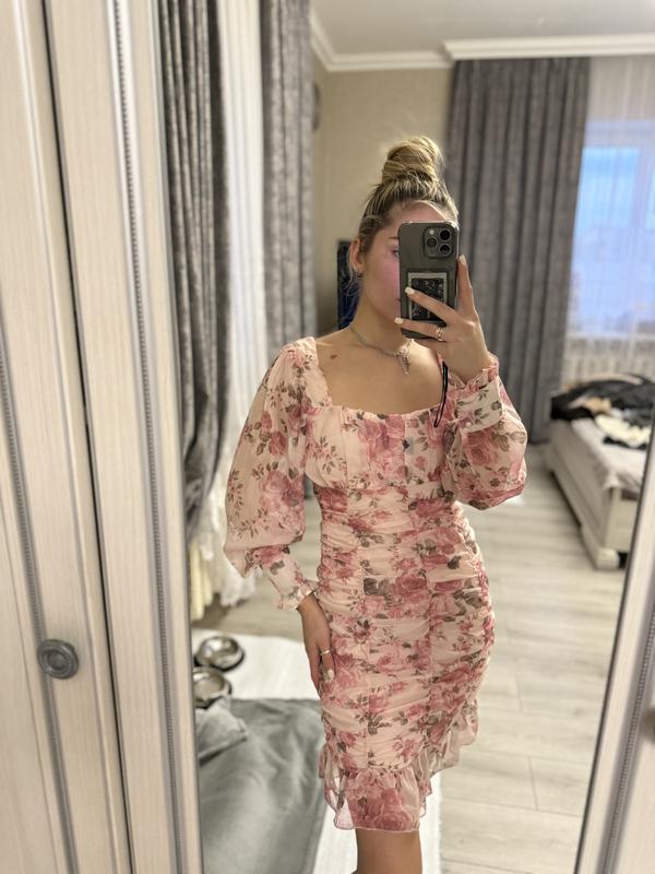 Сукня квітковий принт Розмір XS, але по факту S Стан хороший , але на останньому фото видно недолік (немає ґудзика) 100% поліестер