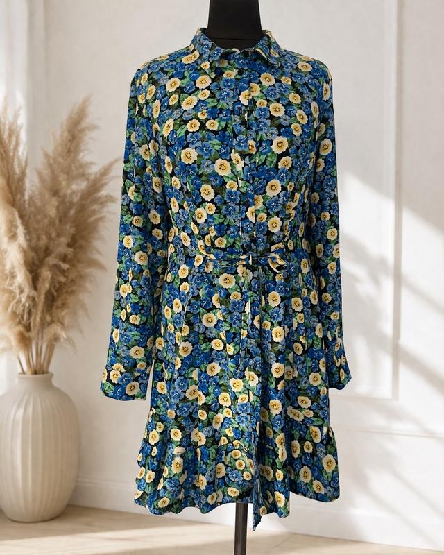 Нове плаття в квітковий принт, йде на ґудзиках , також є завязки, можна зав’язувати спереду або по боках. Розмір вказаний 16, маломірить на м-л Тканина 100% поліестер