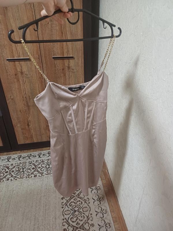 Сукня NANAA Розмір: UK 6 / EUR 34 / US 2 Елегантна сатинова сукня кольору champagne (шампань) з ланцюжковими бретелями. Має гарну посадку та м’який блиск тканини, підкреслює фігуру. Стан — одягалася лише 1 раз, як нова. 📦 Відправляю Новою Поштою 💸 Ціна: 250 грн