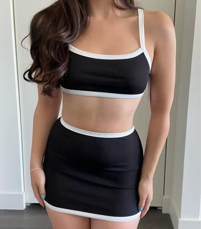 Комплект топ і спідниця чорна з білою обшивкою, новий комплект в рубчик y2k goth alt coque...