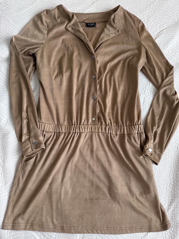 Сукня в ідеальному стані. Тканина мокрий замш. Дуже приємна до тіла. Довжина 88 см Рукав від шва 62 см Груди 53 см. Пояс на резинці