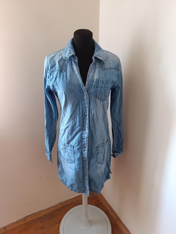 Плаття-сорочка ,розмір S. Замір : ширина плечей37, півобхват грудей 43, довжина рукава 65, довжина плаття 86.