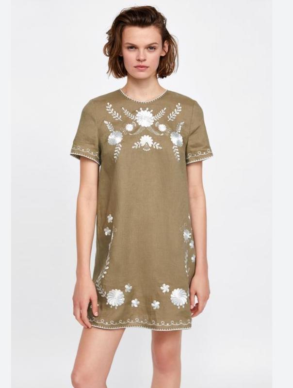 Сукня оливкового кольору (як на моїх фото). Стан ідеальний. Охайна вишивка віскозними нитками, яка переливається на світлі. Ззаду застібається на блискавку, довжина якої 42 см. Заміри: ПОГ 50, ПОБ 54, довжина 89. Підійде на 44, 46 розміри.