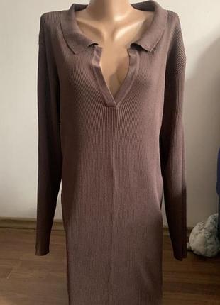 Платье шоколадного цвета в рубчик с воротником. Прямого кроя. Очень хорошо тянется. Длина-94см, длина рукава-62см, пог-55см/тянется до 75см, пот-50см до72см, поб-58см до82 см