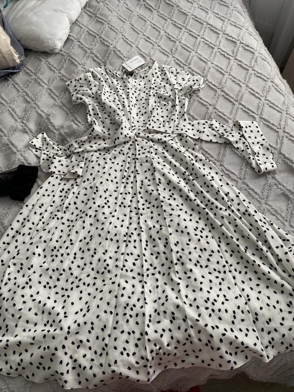 Міді сукня розмір S, але краще сяде на М Нова. Сукня дуже гарно сідає, легка приємна тканина - як і в догляді, так і до тіла (ношу схожу ) На талії є пасок, спідниця вільного крою. Якщо цікаво - заміряю більше параметрів