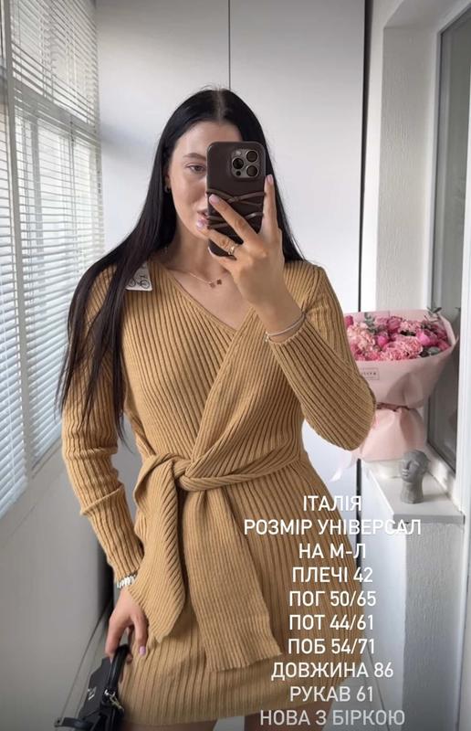 Тепла сукня карамельного кольору. Підійде на S-M. Заміри вказані на фото