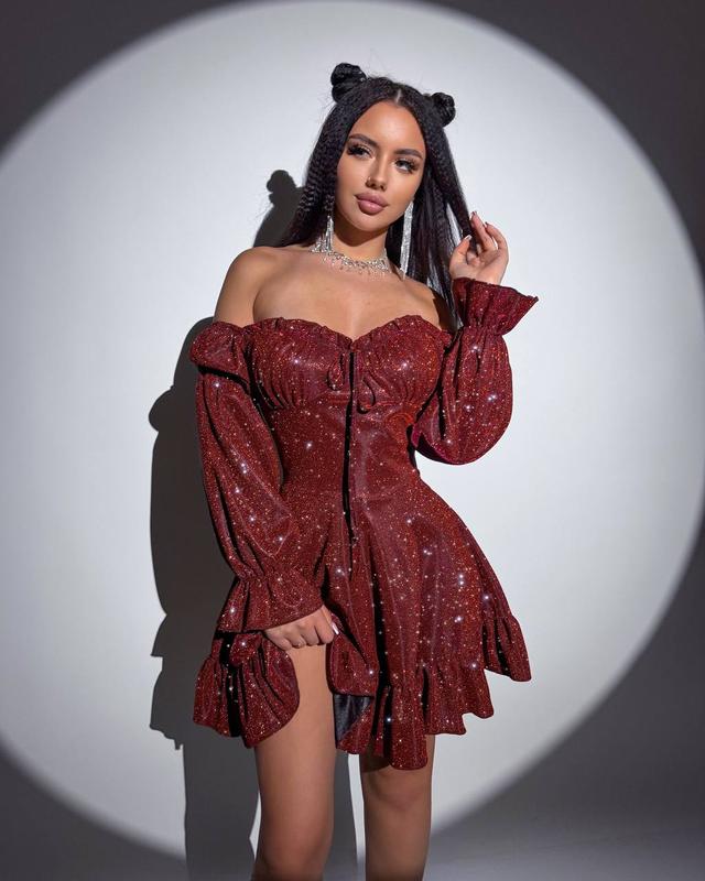 Фото реал😍 Блискучі та мерехтливі люрексові сукні з блискітками ✨ Представлені у такій палітрі кольорів- чорний, моко (хамелеон) електрик, червоний, бордо (хамелеон) Мод: 655 ▪️Тканина: люрекс (північне сяйво) ▪️Кольори: моко (хамелеон), електрик, чорний, червоний, бордовий (хамелеон) ▪️Розміри: 42-44, 46-48 ▪️Відмінна якість ▪️Спинка сукні на потаємній блискавці. Плечики можна приспустити.