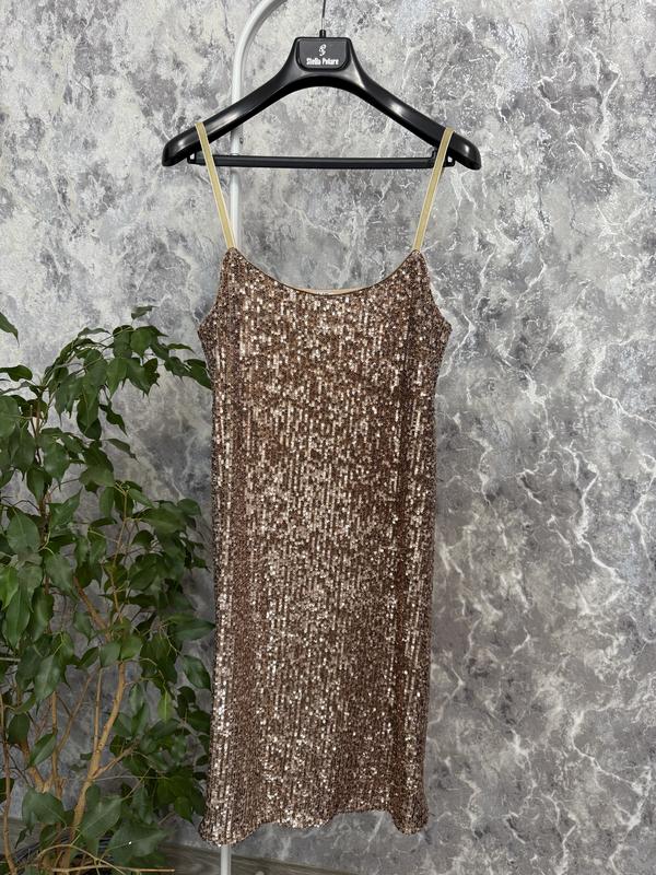 Неймовірна сукня на бретелях в паєтку Liu•Jo Розмір М Стан ідеальний Довжина 90 ПОГ 40 ПОТ 44 ПОБ 46 Тягнеться 100% поліестер Підкладка 92% поліестер, 8% еластан