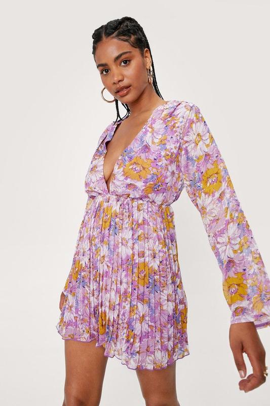 Для більш точного визначення, виміри, порівнюйте із вимірами подібної речі, а не зі своїми обсягами. Яскрава міні сукня у квітковий принт. Тканина тонка. Гофрований шифон з люрексом. Просвічується, не тягнеться. Має підкладку та підплічники. Крій ліф вільно прилягає, глибоке декольте. Талія відрізна, на резинці. Спідниця плісирована, трапеція. Без застібки. Стан: нова, сток з биркою. Дефекти: ні. Розмір на бирці: 8/36 (Виміри виробу вимірюються у напівобхваті, а не від шва до шва!) Виміри виробу: Плечі 38 см., Рукав 60 см., висота пройми 23 см., ширина рукава 21 см., Напівобхват грудей 52 см., Напівобхват талії 34-50 см., Напівобхват стегон 59 см., Довжина по спині 84 см. Довжина від плеча 83 см., Довжина від плеча до талії 35 см. Склад тканини: 100% поліестер, підкладка 100% поліестер. Країна виробник: Китай. Бренд: Nasty Gal. Оплата і доставка: Оплата на картку монобанк. Бронювання на оплату тільки 24 г. При змінах наміру купувати обов'язково повідомляйте! Доставка: На час введення воєнного стану, уточнюйте, чи можлива доставка до Вашого пункту. Актуальні новини можна уточнити на сайті перевізника та за номером телефону контакт-центрів. Не забудьте ПІДПИСАТИСЯ, щоб бути в курсі всіх новинок та розпродажів!