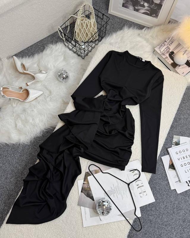 New🩶 Сукня зі шлейфом Реальні фото🔴 🔘Мод 1177 🔘Розміри - 42-44, 46-48 🔘Кольори - чорний, шоколад 🔘Тканина - мікродайвінг 🔘 Коротенька ідеальна сукня зі шлейфом збоку. Тканина тягнеться та сідає по фігурі, приємна до тіла