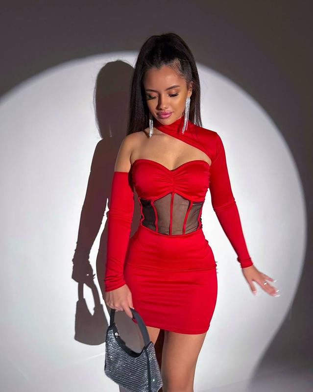 New❤️ Сукня з корсетною вставкою та ефектом PUSH UP 👑 Мод 657 Тканина: мікродайвинг +сітка (еластична тканина, добре тягнеться та ідеально сідає по фігурі) Розміри: 42-44, 46-48 Кольори: чорний, червоний Низ сукні сзаду іде з ефектом PUSH UP 📸Фото реал