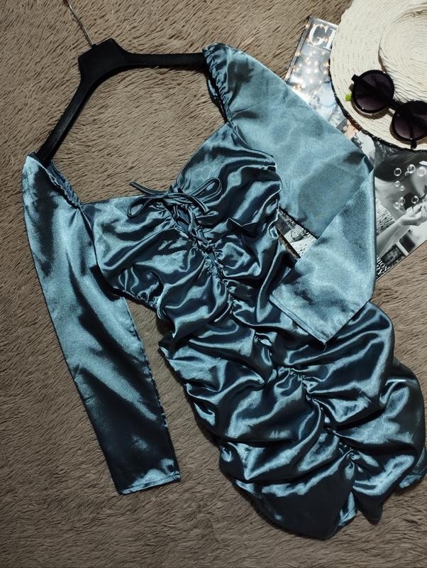У відмінному стані, є кілька незначних затяжок ( останнє фото), не дуже помітно ч в ціні враховано. Гарна сукня з драпіруванням. Тканина легка, шовковиста, трішки тягнеться. Колір ближче до останнього фото. Розмір на бірці 8/36/S, але маломірить, дивіться по замірам Заміри (напівобхват): Груди 40(тягнеться до 44) Талія 34(тягнеться до 36) Рукав 59 Стегна 45(тягнеться до 46) Довжина від плеча 80
