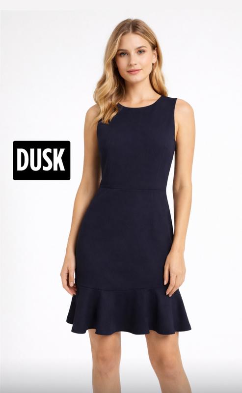 Нова оригінальна сукня від бренду Dusk з цінником. Елегантна модель темно-синього кольору з воланом по низу. Матеріал: віскоза Розмір: M Стан: нове Параметри: • ПОГ: 44 см • ПОТ: 40 см • ПОБ: 48 см • Довжина: 89 см Класичний крій без рукавів з круглим вирізом. Приталений силует підкреслює фігуру, а воланчик додає жіночності. Ідеально підходить для офісу та особливих випадків.