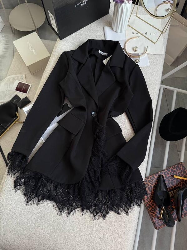 Елегантне плаття-піджак із дорогим італійським мереживом, фото реал 🏷️ Ціна - 1080 грн ⠀ ▫️Тканина: креп костюмка ▫️Розміри: 42-44, 44-46 ▫️Кольори: чорний ⠀ Якість люкс! Розкішне плаття-піджак у класичному чорному кольорі, створене для особливих виходів. Модель виконана з щільної костюмної тканини та доповнена дорогим італійським мереживом по низу та на рукавах, що надає образу жіночності й вишуканості. Глибоке декольте, акуратний крій та ідеальна посадка роблять цю річ справжнім фаворитом у гардеробі. Стильний акцент — ніжна мереживна вставка, яка додає легкого шику та преміального вигляду. Брошка та пояс у комплект не входять. ⠀ Модель 445