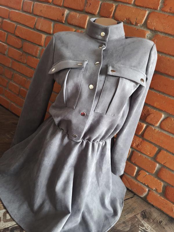 Очень приятный гладкий велюр. С внутренней стороны гладкая и приятная к телу. Кнопки рабочие к талии. Талия - резинка. Карманы рабочие. Воротник стойкой. Указан размер М Длина 82, плечи 38, рукав от плеча 58, подмышки 46-50, пояс резинка 32-50, бедра свободные Также в наличии подобное платье в пудре (последнее фото)
