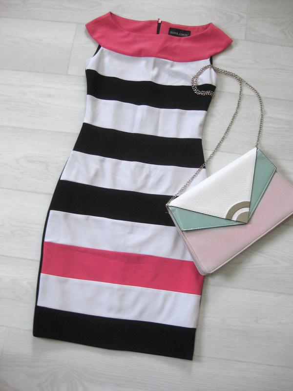 Брендове обтисле щільне біле плаття в смужку frank lyman