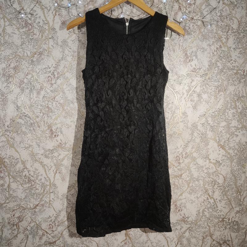 Дуже гарна сукня по фігурі без рукавів, мереживна на підкладці, ззаду змійка. Сукня тягнеться, але сам по собі матеріал пілотний. Заміри в спокої: НОГ 39 см НОТ 35 см Довжина 87 см