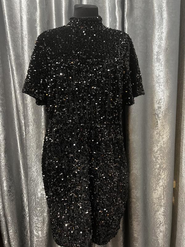 Чорне плаття сукня в паєтках на поясі резинка з шикарною спиною і бантом на спині